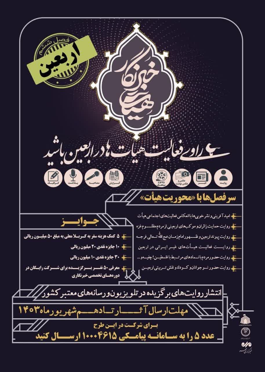 همزمان با فرارسیدن ایام ماه محرم و برپایی مجالس عزاداری، سازمان هیأت و تشکل‌های دینی پنجمین فصل طرح «هیأت خبرنگار» را برگزار می‌کند.