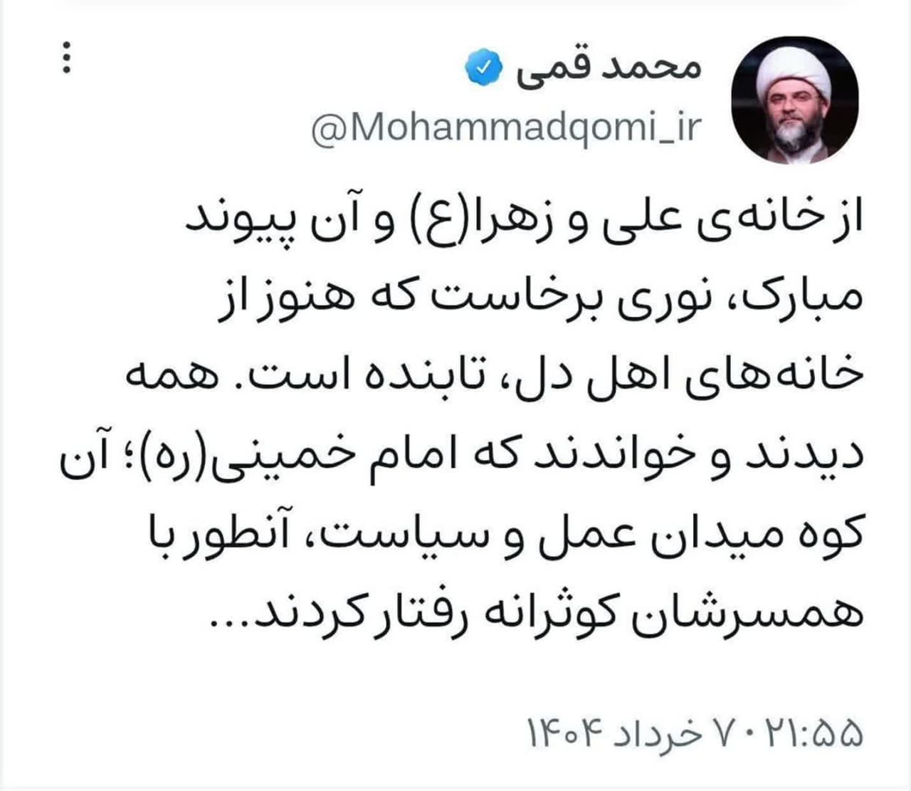 ۷ خرداد | حجتالاسلام قمی در صفحه شخصی خود نوشت؛