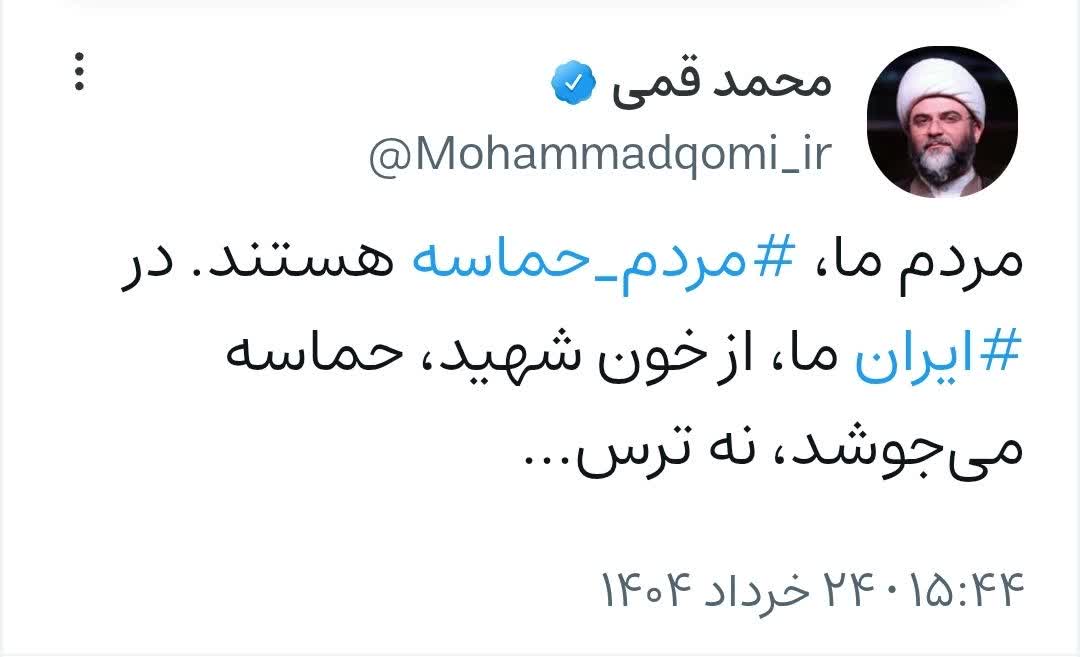 ۲۴ خرداد | حجتالاسلام قمی در صفحه شخصی خود نوشت؛