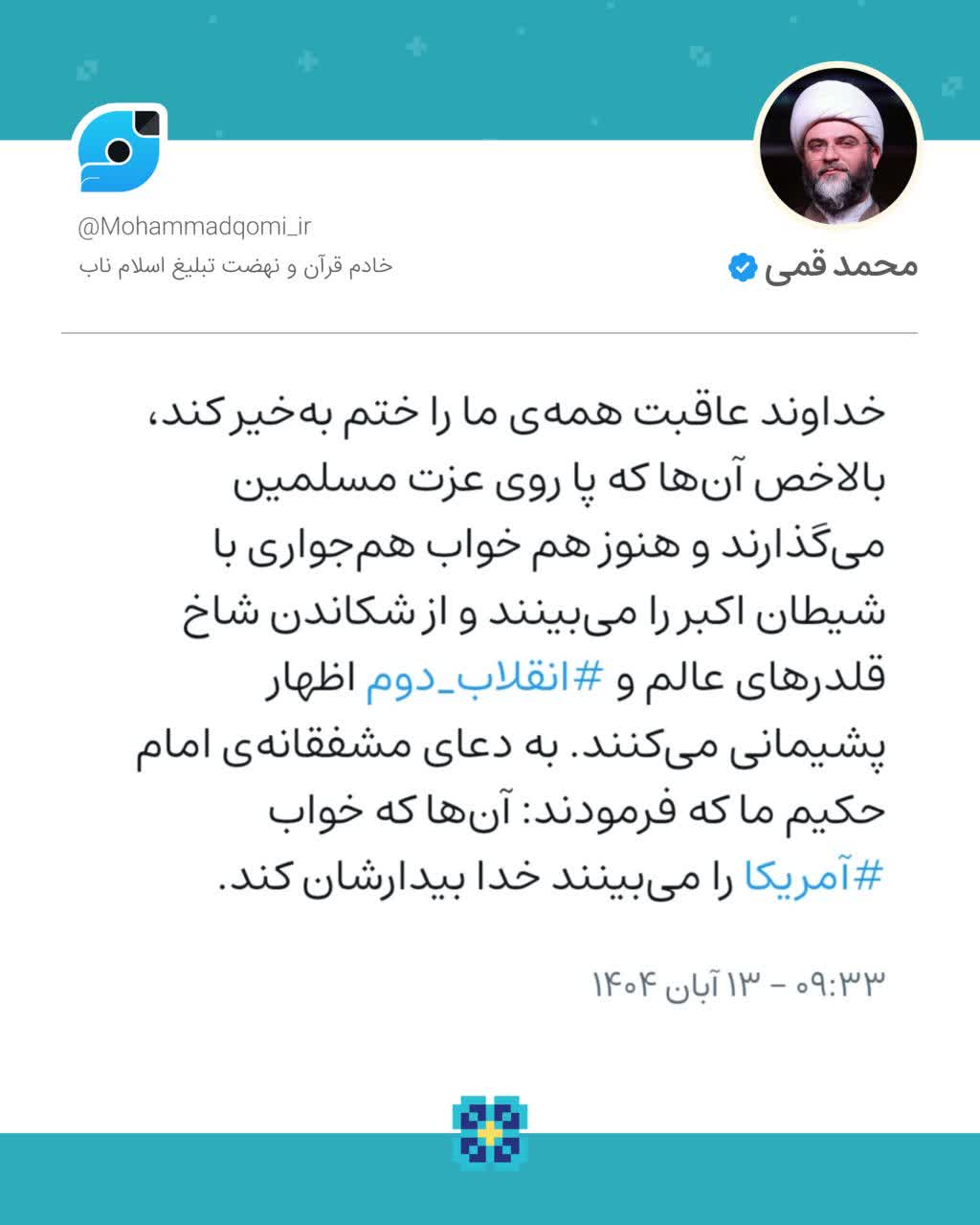 ۱۳ آبان | حجتالاسلام قمی در صفحه شخصی خود نوشت؛