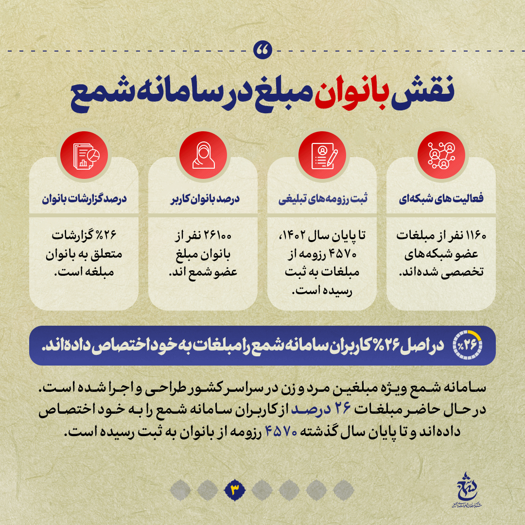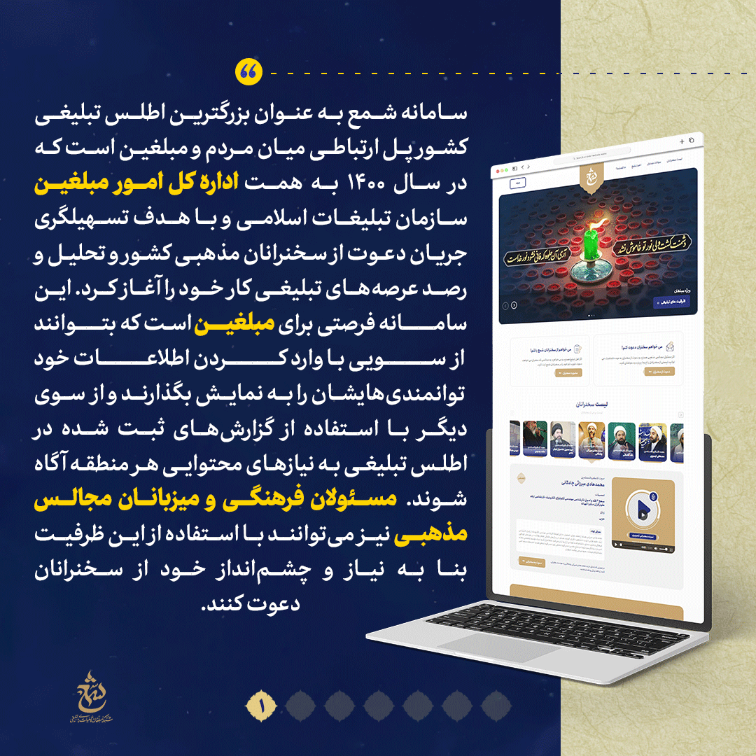به گزارش روابط عمومی سازمان تبلیغات اسلامی، سامانه شمع به عنوان بزرگترین اطلس تبلیغی کشور پل ارتباطی میان مردم و مبلغین است که با هدف تسهیلگری جریان دعوت از سخنرانان مذهبی کشور و تحلیل و رصد عرصههای تبلیغی فعالیت میکند. در این شماره از نشریه دیجیتال نگاهی میاندازیم به سامانه شمع و برخی از اعداد و ارقام مرتبط به این سامانه را که این روزها بیش از پیش مورد توجه مبلغین و مبلغات، مسئولان فرهنگی و میزبانان مجالس مذهبی قرار گرفته است باهم مرور میکنیم.