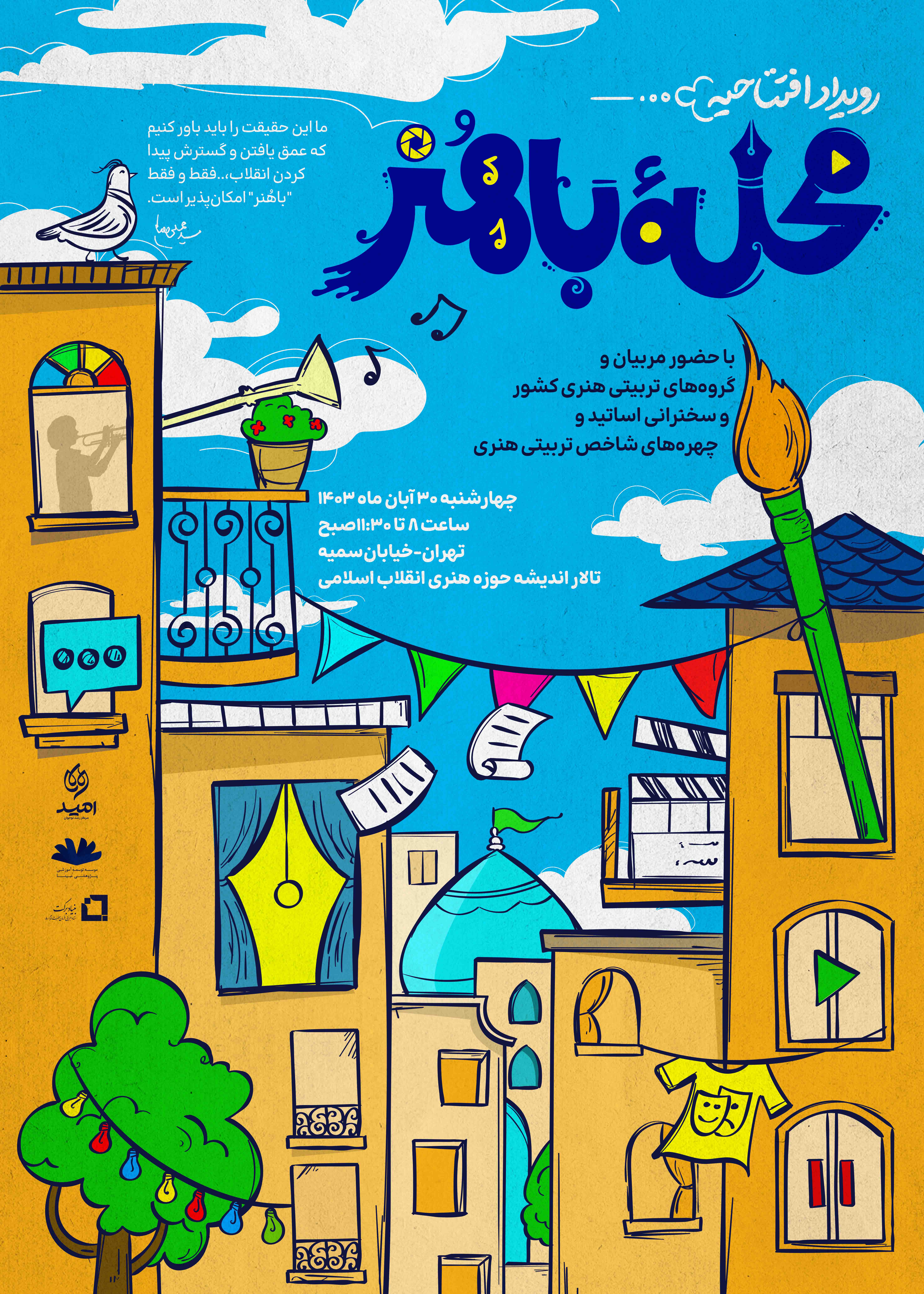 مراسم افتتاحیه اولین دوره رویداد «محله باهنر»، مسئولین حوزههای تربیتی، هنری و انقلابی کشور حضور خواهند داشت. این رویداد فرصتی عالی برای ایجاد ارتباط میان گروههای تربیتی و مسئولین است تا از طریق تبادل تجربیات و نظرات، راهکارهای جدیدی برای ارتقای فعالیتهای هنری و تربیتی در محلات مختلف کشور پیدا کنند.