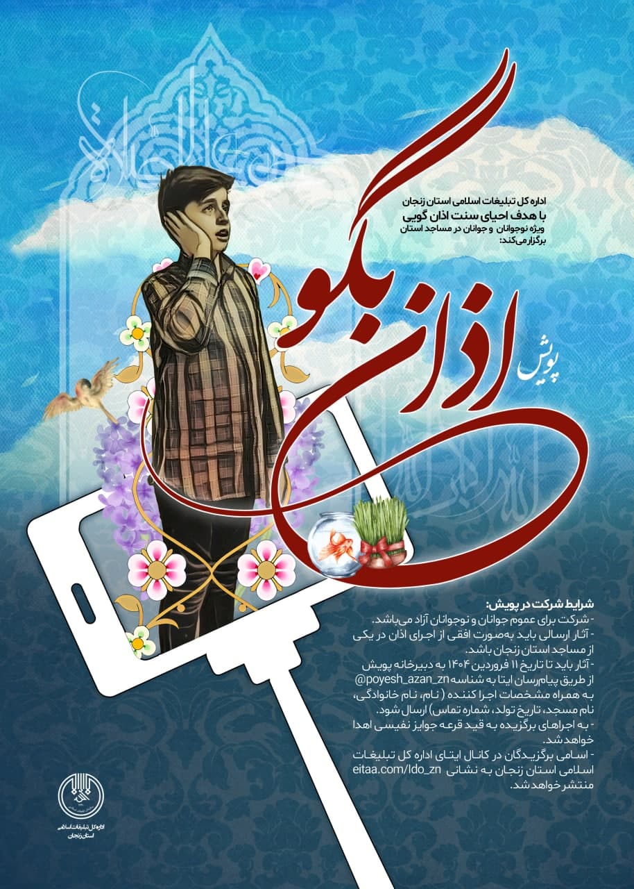با هدف احیای سنت اذانگویی در بین جوانان و نوجوان پویش "اذان بگو" همزمان با ماه مبارک رمضان در زنجان برگزار میشود.