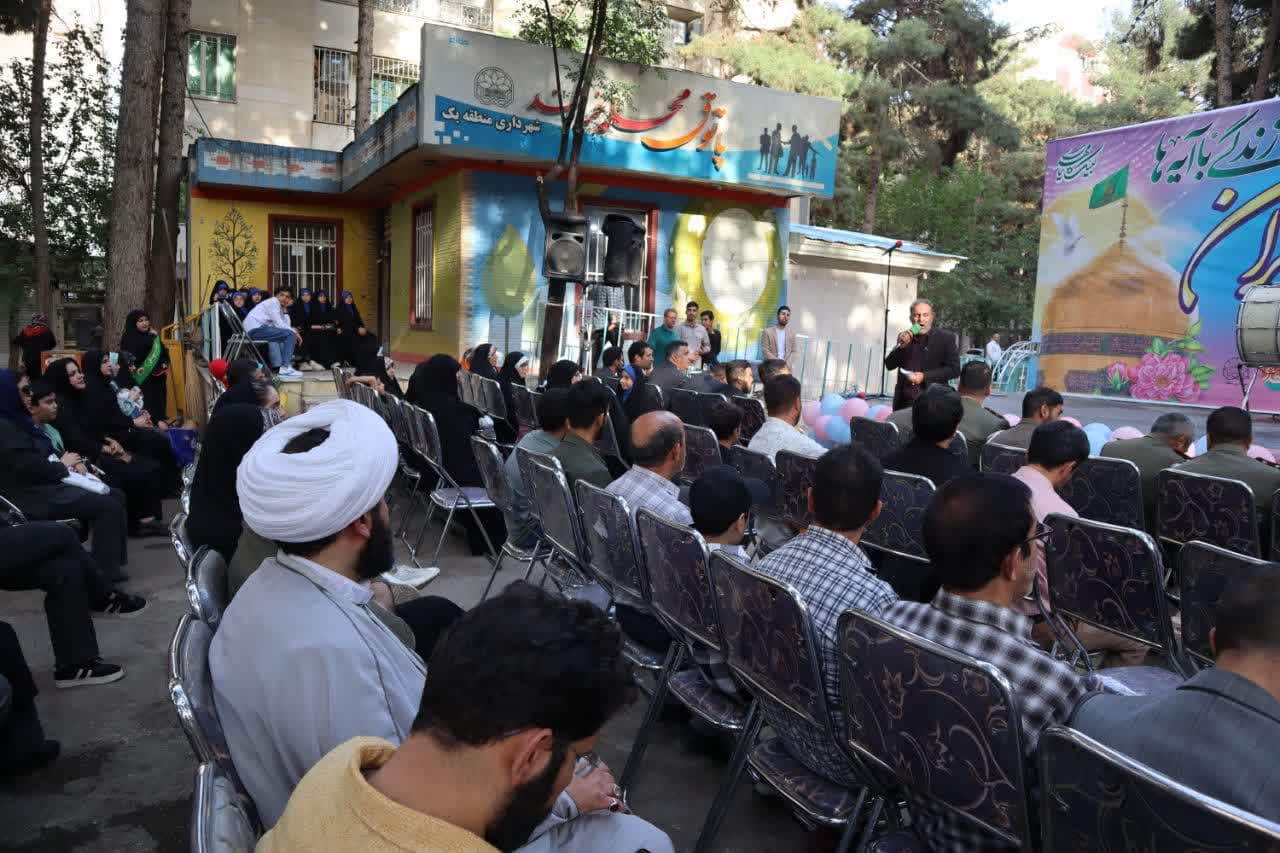 مداحی حاج یزدان ناصری و حضور پرچم متبرک حرم مطهر امام رضا (ع) شور و شعف وصفناپذیری در میان مردم ایجاد کرد و اشکهای شوق بر گونهها جاری ساخت.