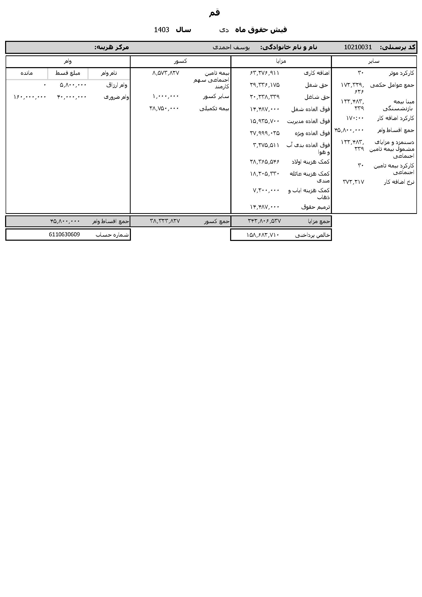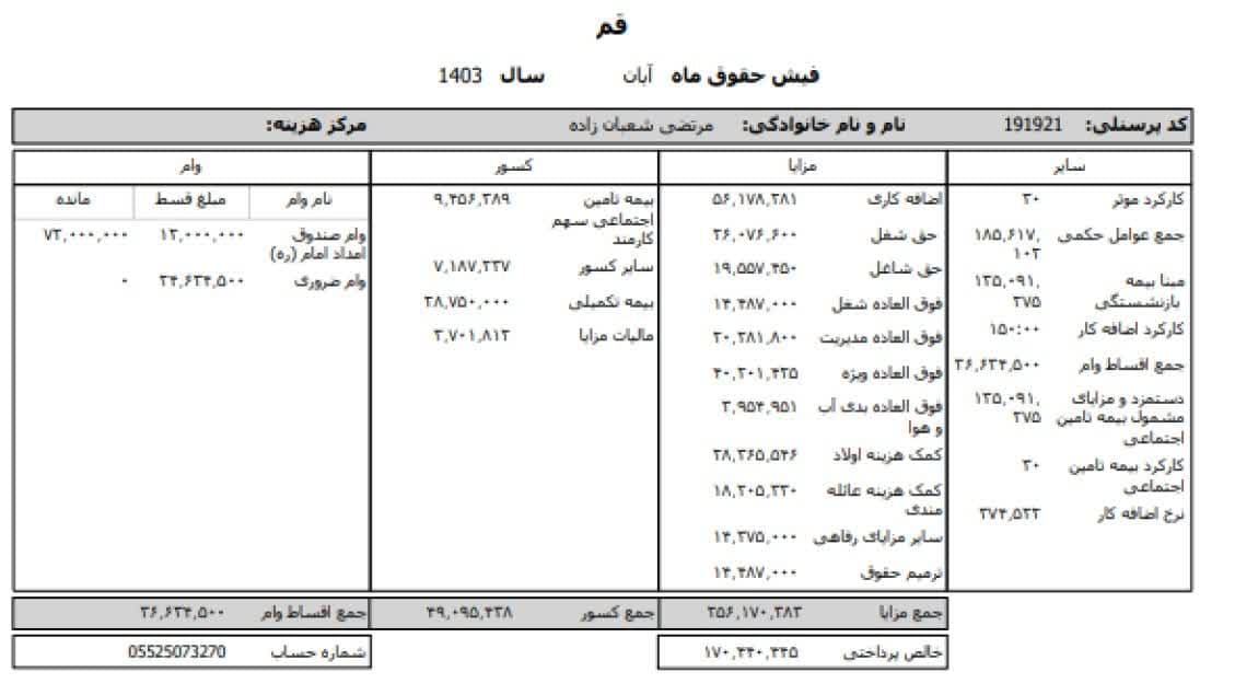 حقوق عمومی اطلاعات حقوق و مزایای ۱۲ ماهه مدیر کل تبلیغات اسلامی استان قم و فیش حقوقی ۱۲ ماهه معاون اداری و مالی منتشر شد.