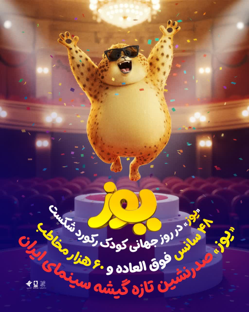 به گزارش روابط عمومی سازمان تبلیغات اسلامی، همزمان با روز جهانی کودک، انیمیشن سینمایی «یوز» به کارگردانی رضا ارژنگی و تهیهکنندگی احسان کاوه که چهارشنبه ۱۶ مهر به صورت نیمبها در سینماهای سراسر کشور عرضه شد، با ٣ میلیارد و ٣۶٠ میلون تومان فروش در روز کودک و جذب ۷۰ هزار مخاطب، رکورد پرفروشترین و پرمخاطبترین روز تاریخ سینمای ایران برای یک فیلم کودک را شکست.